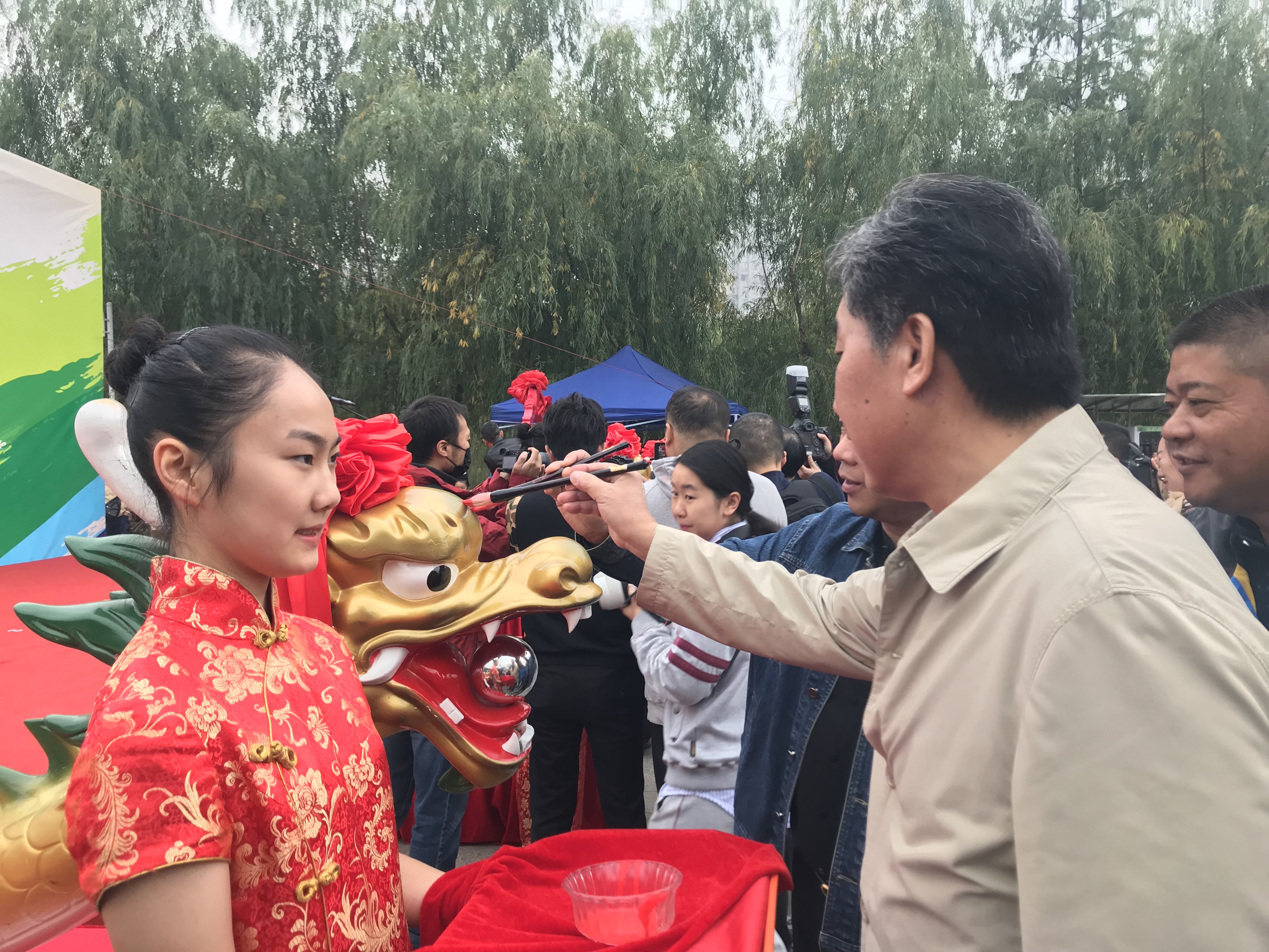市教育局赵贵林处长为龙头点彩,意喻“鸿运当头”