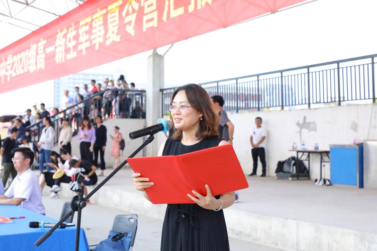 上午8:30左右,于红梅老师向高一年级全体同学宣读了前一天的最美小报和最美宿舍的评比结果,赞扬了同学们在军训期间的改变和进步。总结完毕,各个连队在教官的带领下向操场集合。在等待大会开始和家长代表入场的过程中,教官们带领各个连队举行拉歌比赛,互相竞争,放松了同学们的紧张心情,也鼓舞了连队的士气。