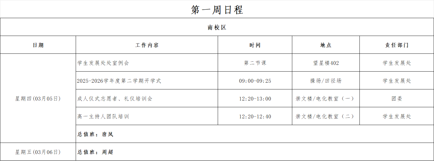第一周工作日程(3月4日-3月8日)