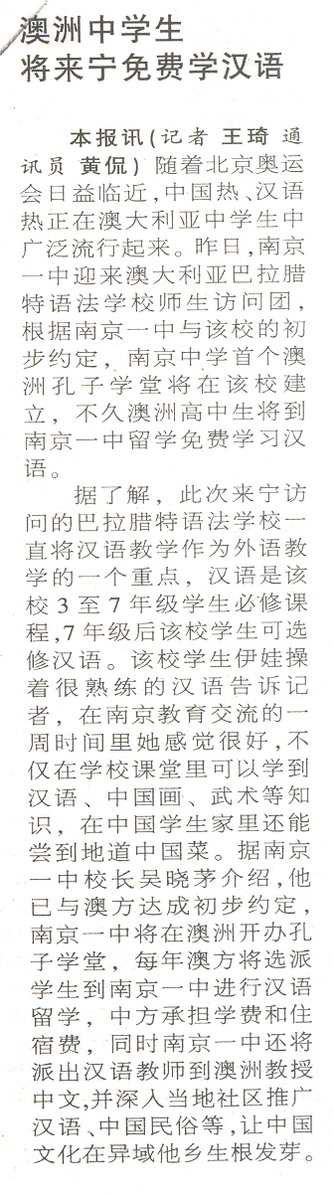 澳洲中学生将来宁免费学汉语