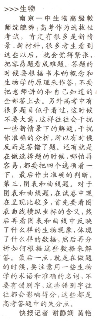 各科名师最后提醒 ----- 生物