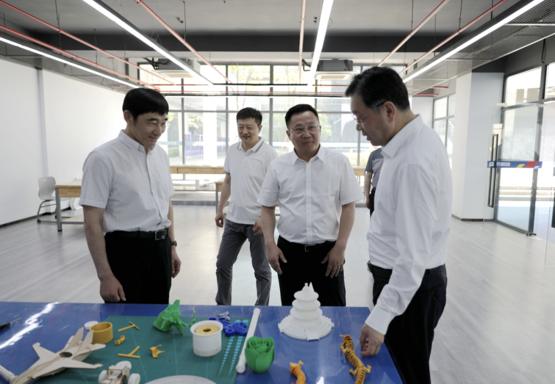 当天,杨岳一行实地参观了南京一中浸润式学习课程基地,杨岳认为学生的创新能力很重要,这些场所为学生提供了动手实践的机会。学校注重创新、注重实践环节,在日常中激发学生创造能力,点燃青少年科学梦想。“这既符合人才成长规律,也符合教育规律,学校特色科学课程建设值得肯定。”
