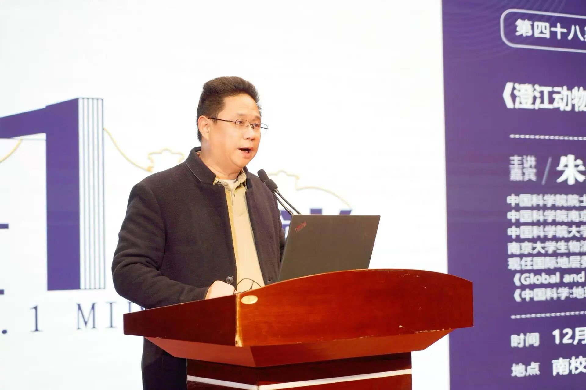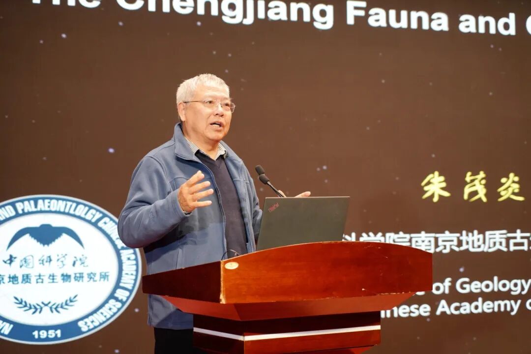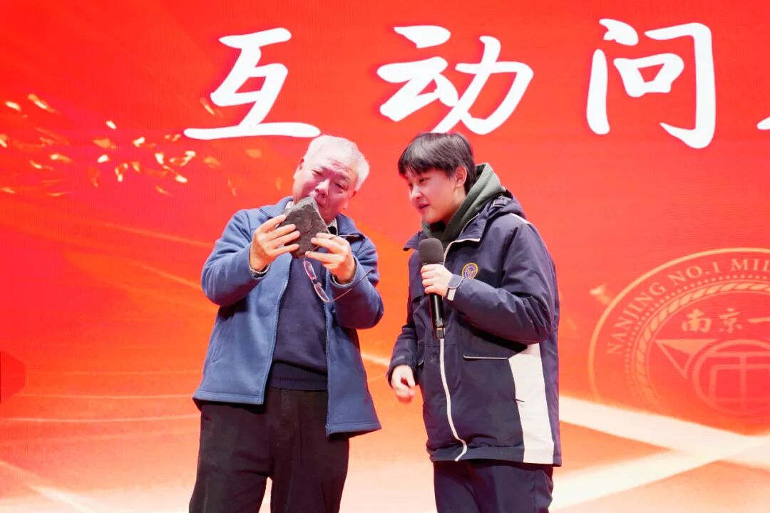12月16日,南京一中第48期“院士1课堂”正式开讲!崇文学子在中国科学院院士朱茂炎的带领下,叩问生命演化的脉络,探寻地质变迁的奥秘。与以往的“院士1课堂”不同,本次活动不仅是一场院士讲座,也是科学与阅读的深度融合。当天,由民盟江苏省委会科普工作委员会和中国科学院南京地质古生物研究所共同主办的“盟韵·共读好书”活动走进南京一中,向同学们赠送精彩的书目《澄江动物群:见证地球生命大爆发的化石自然遗产》。