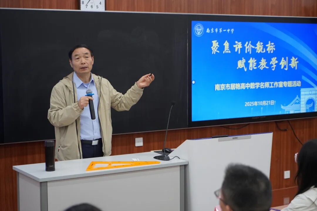为深入推进高中数学命题的研究与创新,进一步提升新时代教师的命题能力,10月21日,南京市高中数学居艳名师工作室举行专题活动。本次活动以“聚焦评价航标,赋能教学创新”为主题,特邀知名专家开讲,名师工作室全体成员及南京一中数学教研组、南京一中实验学校数学教研组共同参与本次活动,南京一中教育对口支援学校陕西省镇安中学数学教研组及四川省达州一中团队线上参与学习。