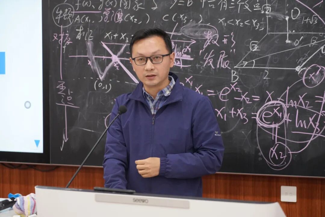 祁教授表示,作业设计与命题研究能力是教师的第五大能力,命题研究是教学研究的子集、教育测量的根本目的是激发学生的学习动机,并从立德树人、服务选才及引导教学三方面诠释了高考的意义。他指出,一份高质量的命题试卷应兼具基础性、综合性、应用性及创造性,从而考查学生的学科素养、核心价值、关键能力以及必备知识。祁教授结合函数、三角、导数、立体几何等经典数学模型与我们展开数学试题命制的思路与方法,展现数学教育的对称之美、简约之美和逻辑之美。祁教授的发言引发了在场教师的深思,赢得了参会教师的阵阵掌声。