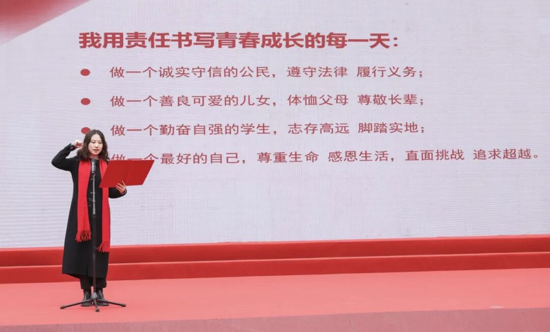在集体成人宣誓环节,千名学子在党委书记居艳的带领下高举右拳,誓言响彻校园,将法治信仰、家国情怀、责任担当融入血脉,以成年之姿立下报国之志,彰显新时代青年的赤子初心。