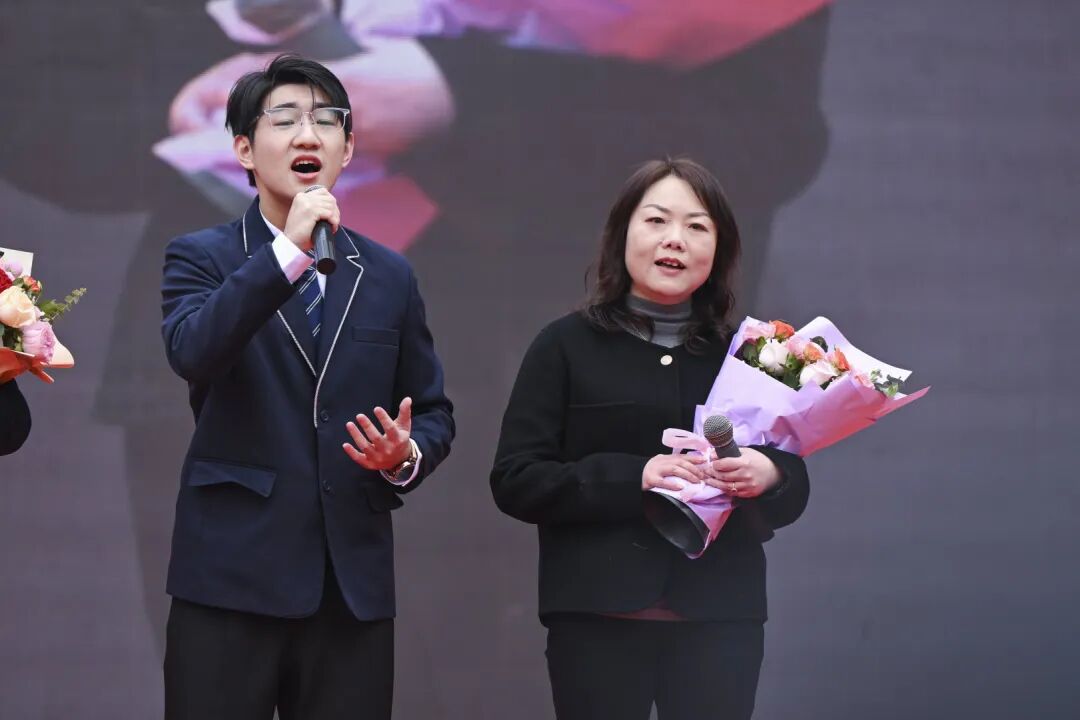少年当有凌云志,万里长空竞风流。现场,高三(20)班彭彦妮同学作为学生代表发言。“我相信家人的关爱能驱散迷茫;相信学校的栽培能滋养成长;相信朋友的陪伴能凝聚锋芒;相信坚定的信念能劈开迷雾;相信执着的坚守能踏平坎坷,相信滚烫的梦想可以打破质疑;相信时间有运化一切的能力,让所有的鲜花和掌声都在未来的某一天变得顺理成章!”此刻,那些对父母养育之恩的深切感念,对师长谆谆教诲的由衷敬意,对青春成长的真切感悟,都凝聚成了真挚而坚定的声音,回荡在现场每一个人心中。