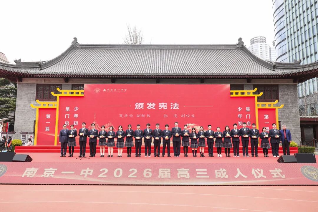 随后,南京一中夏季云副校长、张亮副校长为学子颁发《中华人民共和国宪法》,让法治精神伴随成年之路。