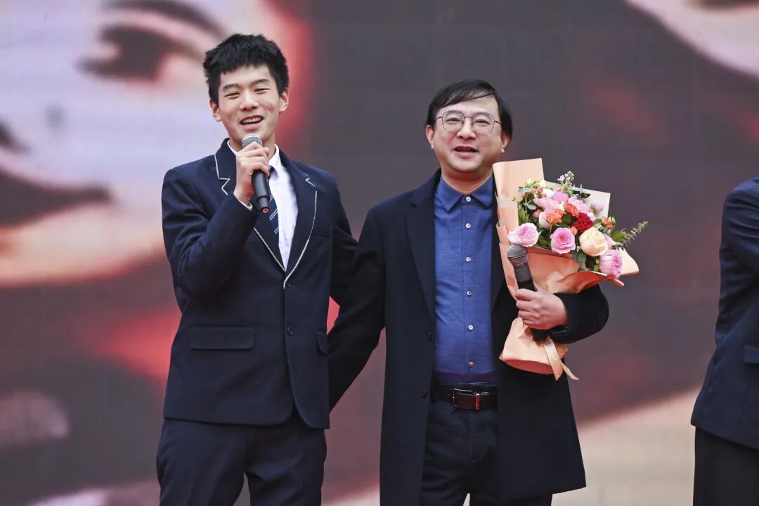 现场,邓博睿同学的爸爸作为家长代表登台发言。家长以深情寄语,道出对孩子成长的期许与祝福,字字恳切、句句深情,传递着家人不变的牵挂与守望。他说:“亲爱的孩子们,在这个标志着成熟与独立的重要时刻,作为父母,我们心中虽有千言万语,最终汇聚成四句嘱托——愿你们心怀担当,肩扛责任;懂得感恩,心存温暖;坚守理想,不负韶华;脚踏实地,行稳致远。”
